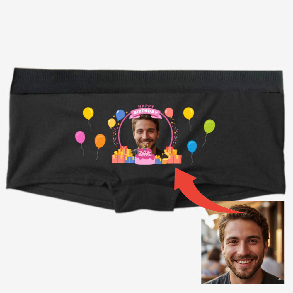 Sıradan doğum günü hediyelerini bir kenara bırakın! Bikafa.com'un "Happy Birthday" temalı kişiye özel kadın boxerı, yılın en özel gününe neşe ve mizah katmak için tasarlandı. Doğum günü çocuğu veya partisinin en sevilen yüzünün fotoğrafını yükleyin. Yüz, rengarenk balonlar, hediyeler ve doğum günü pastası figürleriyle çevrili komik ve sevimli bir tasarıma dönüşerek boxerın üzerine baskılanır. Bu boxer, sevgilinize, eşinize ya da en yakın arkadaşınıza verebileceğiniz en unutulmaz ve en çok güldürecek kişisel hediyedir.
